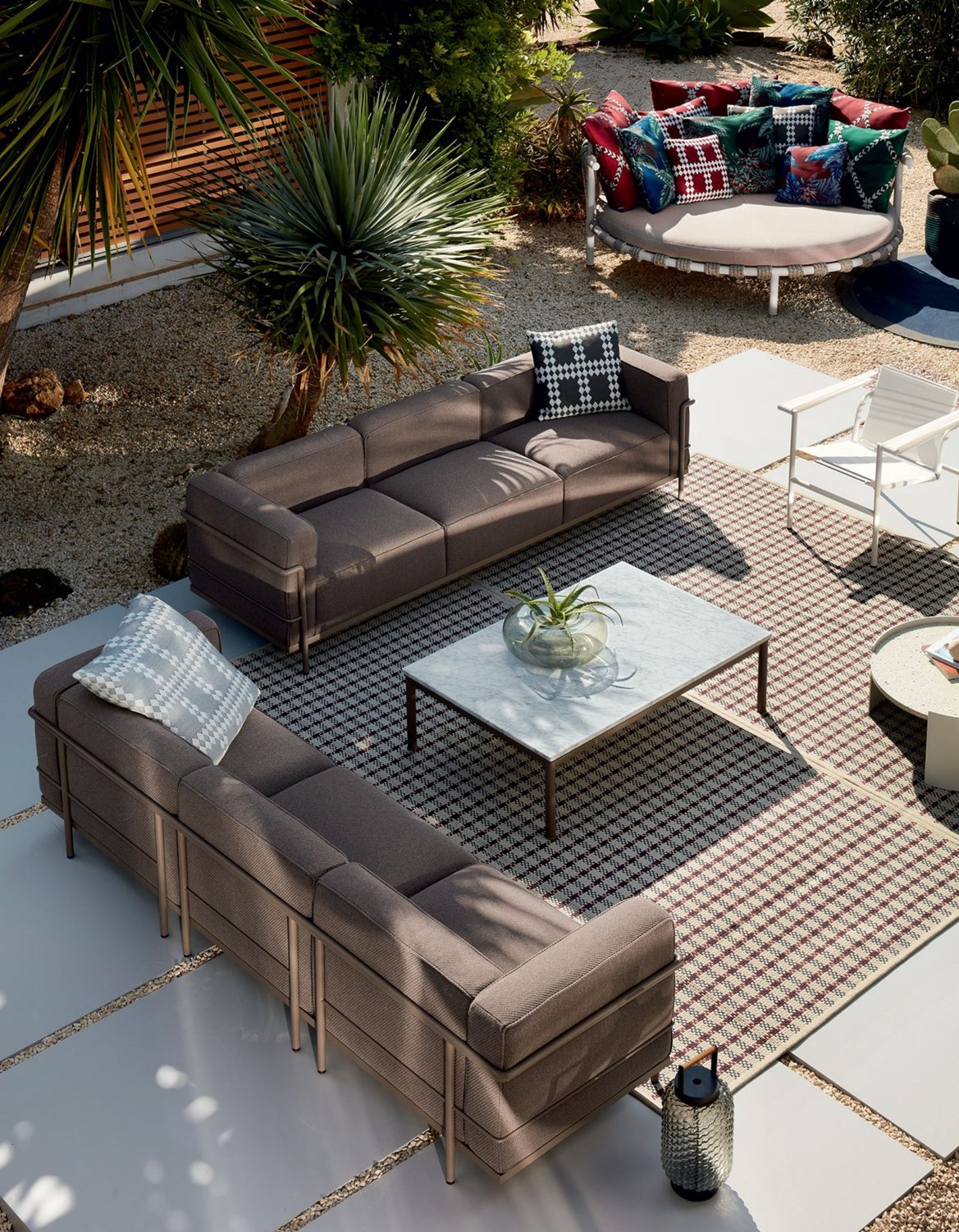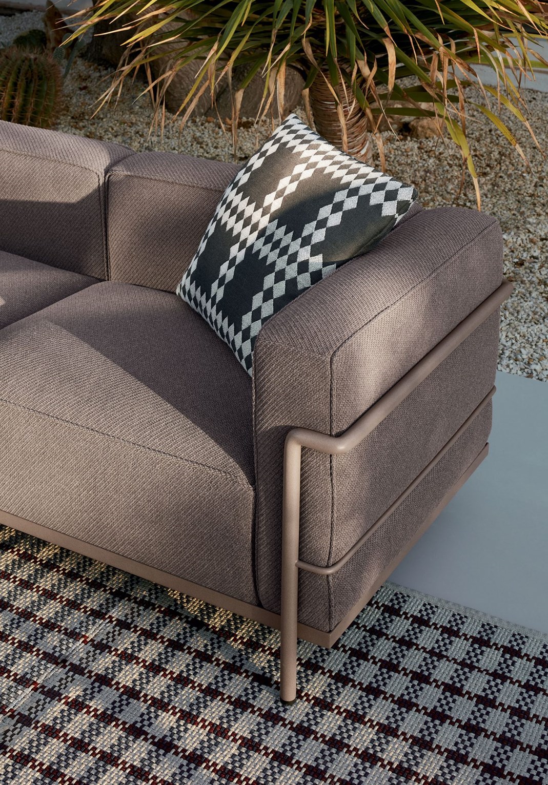 La colección LC3 cuenta con cuatro almohadones no conectados entre sí, encerrados en una estructura de tubo de acero pintado o cromado que constituye el sistema de soporte principal. La separación de la estructura metálica y los cojines expresa un enfoque racionalista de la producción industrial. Los almohadones pueden tapizarse en pana, ecocuero o cuero.